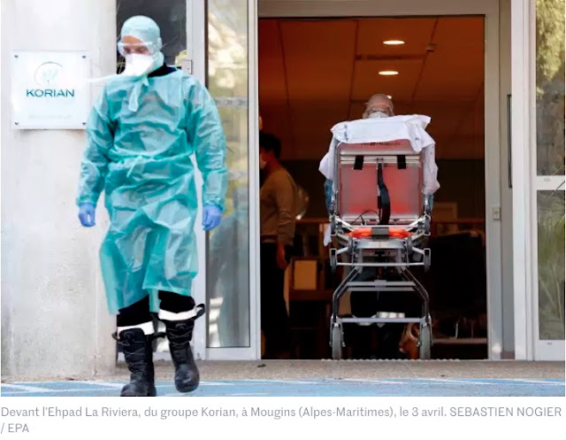 No comment? J'ai pu assister à la file des corbis qui venaient chercher des résidents d'Ehpad... Ce qui m'a semblé surprenant c'est que malgré le nombre de décès, très peu était estampillé Covid. J'ai assisté à une discussion de deux flics qui parlaient d'une personne âgée récemment décédé sans avoir eu aucun symptôme du covid et donc sans qu'à aucun moment les médecins ne parlent du covid à la famille de cette personne... et à la dernière minute, l'hôpital s'est décidé à faire un test covid post mortem. Les deux flics se demandaient quelle serait le résultat du test. Et j'avoue que j'aimerais bien connaitre le fin mot de cette histoire. Ce qui serait rigolo, si je puis dire c'est que ce ne soit pas le covid. Mon sentiment c'est que beaucoup de personne âgée sont mortes de trouille de peur de choper le covid où ont simplement préféré mourir avant de l’attraper. L'effet nocebo et presque aussi drôle que l'effet placebo, du moins pour les amateurs d'humour noir. Je sous-entend que ce serait beaucoup moins drôle si ils étaient tous effectivement mort du covid.